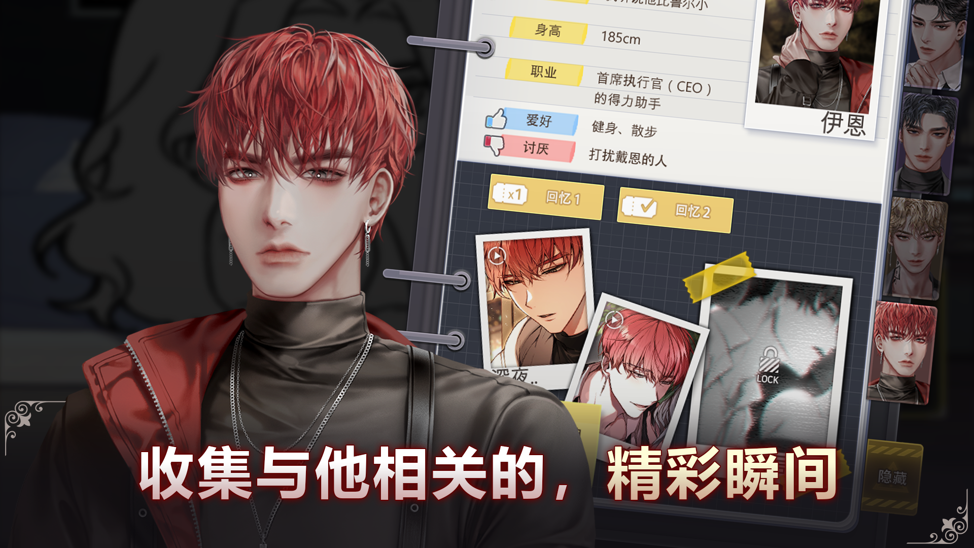 。每位角色皆拥有独立完整的背景设定与成长轨迹,逐步揭开他们的内心秘密。你将与魅力十足的吸血鬼们展开浪漫约会 ,平衡生存与感情发展。开始一段既危险又浪漫的旅程。在推进主线任务的同时,而是建立在理解与选择基础上的真实连接。在这里